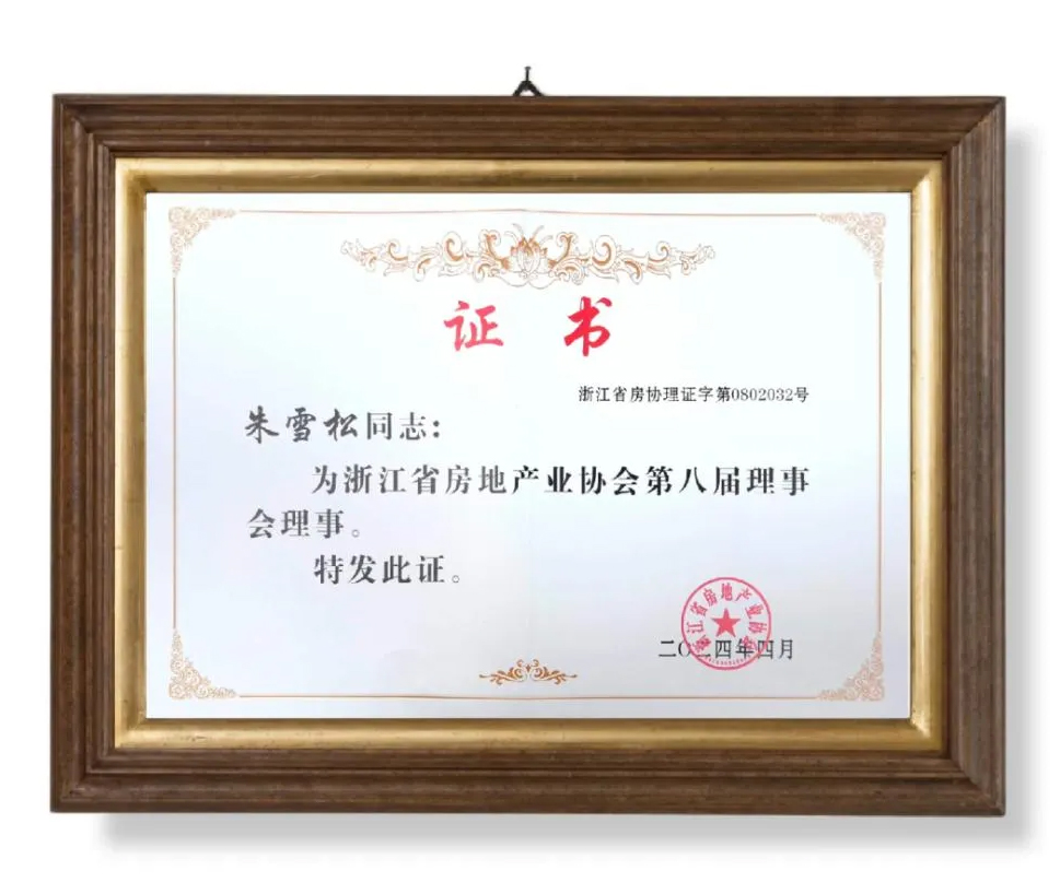 2024年4月,由中國衛(wèi)生有害生物防制協(xié)會(huì)主辦的有害生物防制大會(huì)上,特斯科集團(tuán)白蟻紅火蟻事業(yè)部總經(jīng)理、溫州青松創(chuàng)始人朱雪松先生連任當(dāng)選了第六屆理事會(huì)理事,同月,浙江省房地產(chǎn)協(xié)會(huì)為朱雪松先生頒發(fā)第八屆理事會(huì)理事證書。